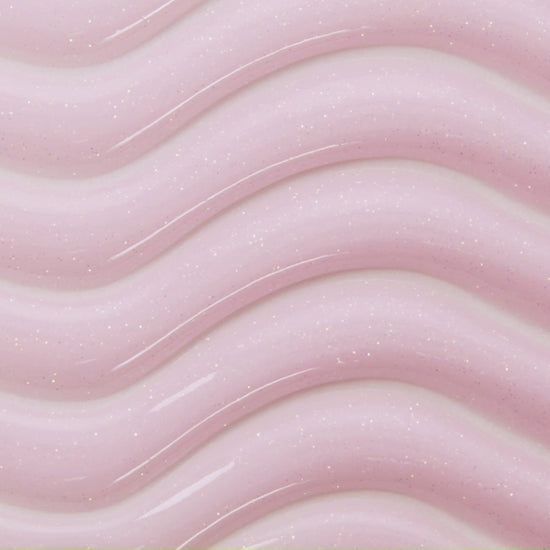 Aura Rubber Base Gel #3 features a soft warm shimmer that creates a delicate luminous glow on the nails